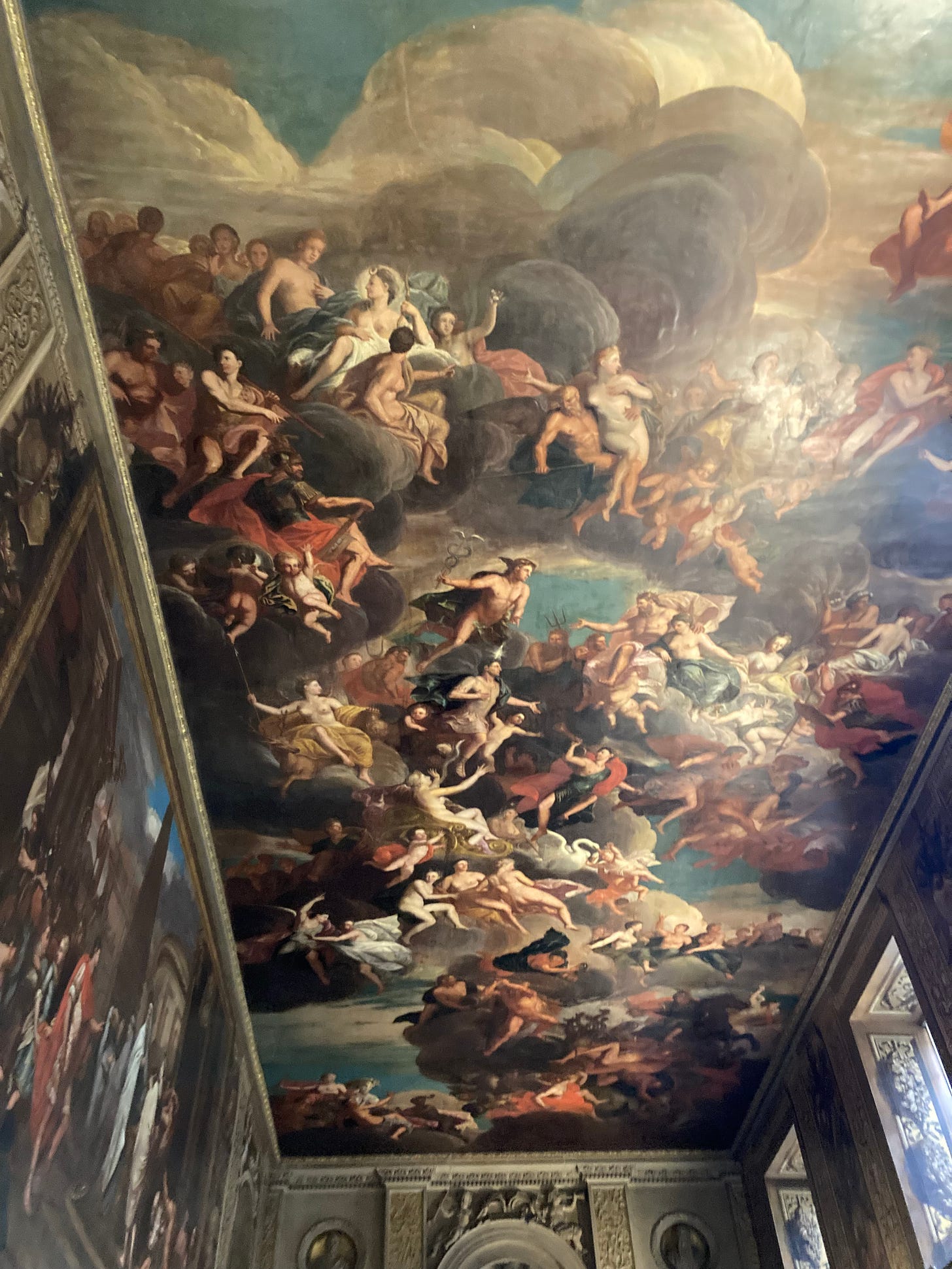 The Sabine room is a smallish bedroom, once a lobby, which is also painted all over with murals, this time by James Thornhill. It is lauded as one of the great wonders of Baroque English painting by writers who use all sorts of words about it, none of which include nudity or topless.