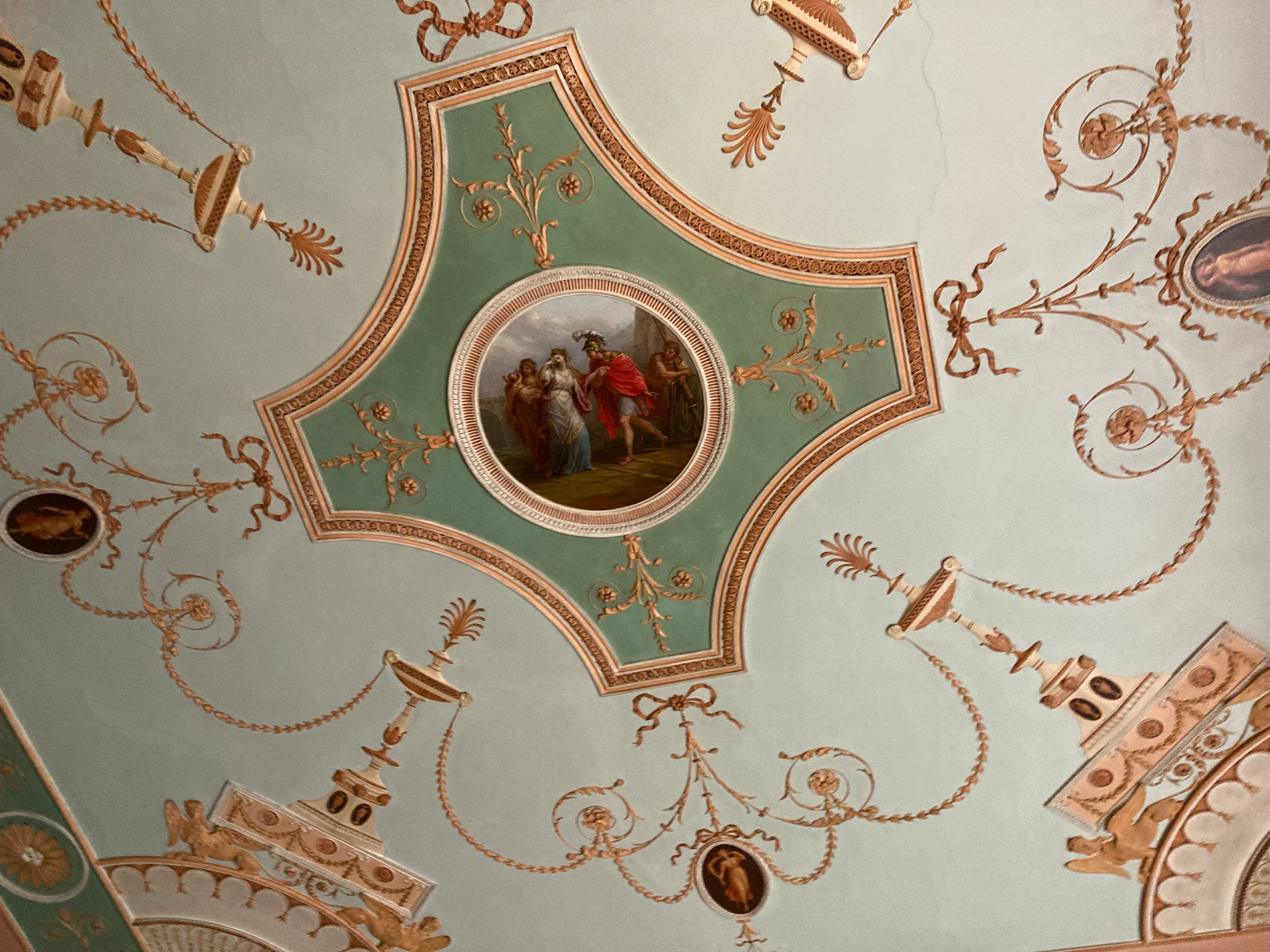 There are couple of things which are worth saying at this point. One is that it’s Not All Stately Homes. Indeed it is more specific and therefore peculiar; grand houses seem to either have a lot of nudity in their decor or none at all. See for example Osterley Park where the ceiling and wall decoration includes lots of lovely vignettes of gods and goddesses, all of whom have managed to keep their clothes entirely in place.